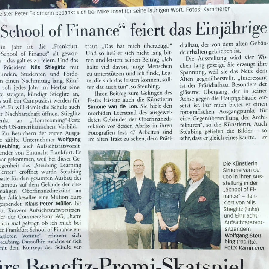 Ein Artikel über meine Ausstellung in der Frankfurt School of Finance